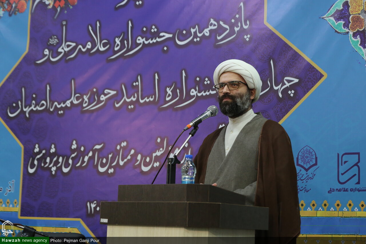 آیین اختتامیه پانزدهمین جشنواره علامه حلی(ره) و چهارمین جشنواره اساتید حوزه علمیه اصفهان صبح روز پنجشنبه 20 آذر 1404 با سخنرانی آیتالله محمدمهدی شبزندهدار، عضو فقهای شورای نگهبان و با تجلیل از مؤلفین و ممتازین آموزشی و پژوهشی حوزههای علمیه استان اصفهان در مدرسه علمیه صدر بازار برگزار شد.